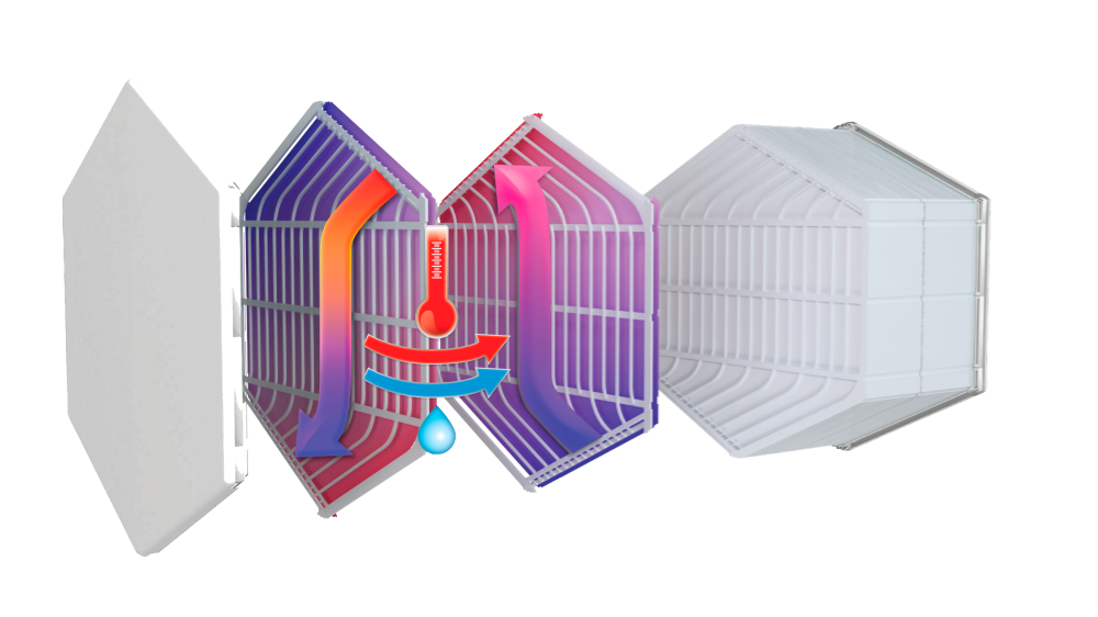 Den smarte varmegenvindingstekologi ClimateCore er en varmeveksler som også overfører fugt til indblæsningsluften. Det gør den igennem membraner i kernen som sørger for at du opretholder et sundere fugtnivaeu, som giver et bedre indeklima året rundt. Derfor vil kernen arbejde på at fugtigheden ikke er for høj om sommeren og samtidig ikke for lav om vinteren.