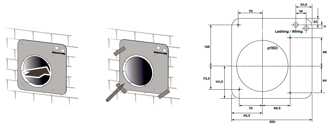 • Enheden er til montering i facadevæg.