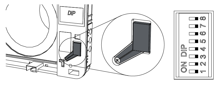 Nulstilling af filteralarmen sker ved flytte DIP switch 8 i ON position i
