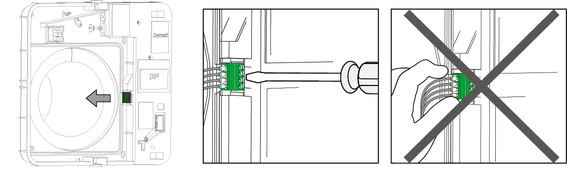 Demonter forsigtigt kabelskoen fra elektronikdelen. Brug en flad skruetrækker til at løfte kabelskoen fri fra kabelmuffen. Træk ikke i ledningerne.