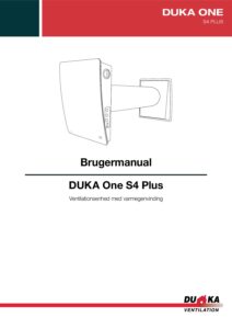 Ved ventilationsforbedringer kan en enhed klare op til 14 kvm. DUKA One S4 Plus har en indvendig komfort skærm, hvor indblæsningsluften føres op ad, hvilket mindsker trækgener. Motoren placeres længst inde i røret, og en lyddæmpningsmåtte placeres på indvendig side af kernen for at give en øget lyddæmpning. Den udvendige stormskærm leder indtags- og afkastluft til og fra enheden.