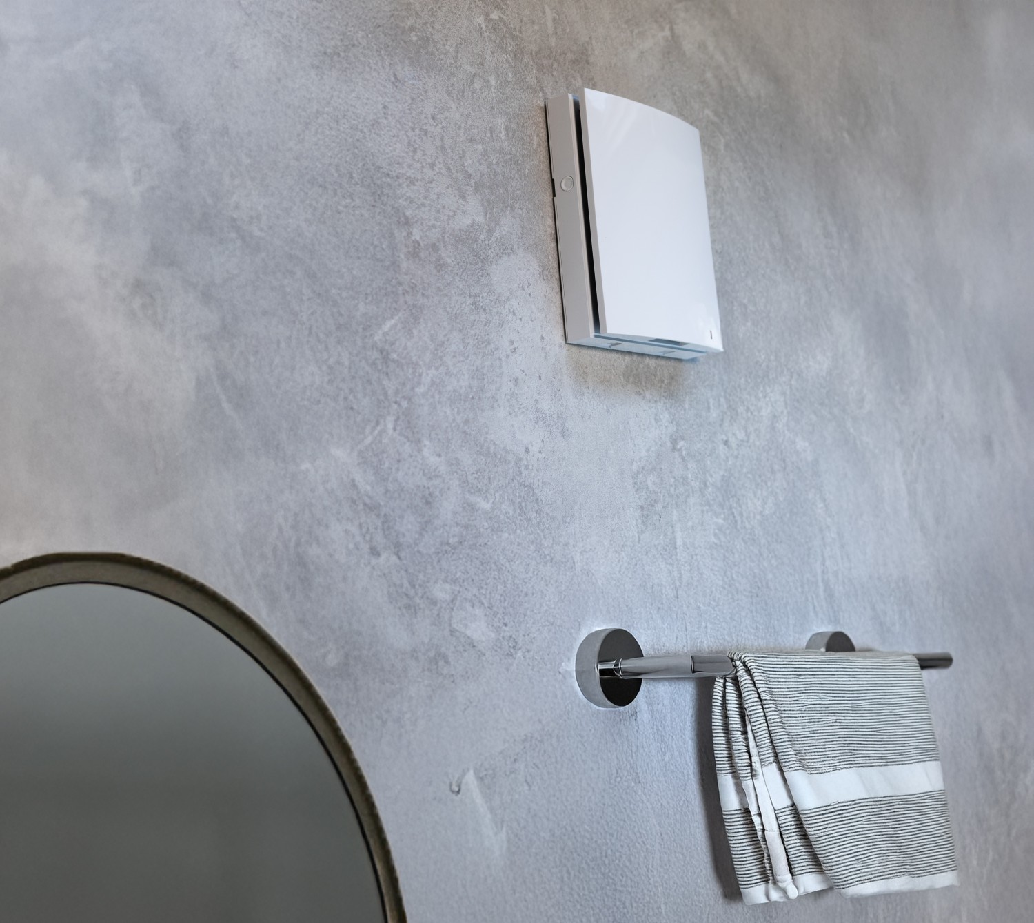 Derfor har vi udviklet en special DUKA One model beregnet til boligens vådrum. Når badeværelset (eller de andre vådrum) ikke er i brug, vil DUKA One enheden sørge for grundventilation med varmegenvinding. Enheden har en indbygget fugtsensor, og når den aktiveres vil enheden skifte til forceret drift med ren udsugning på trin III. Dette er vigtig da fugten fra badeværelset ikke må flyttes til de tilstødende lokaler. Når fugtniveau igen er under den indstillede grænse vil enheden skifte tilbage til grundventilation med varmegenvinding.