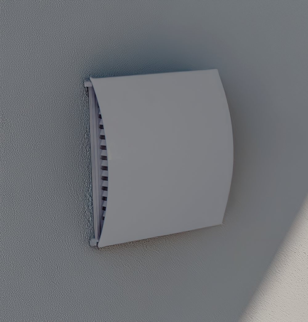 Med Ø160 mm diameter på bagsiden i plast med ind- og udblæsning i siderne.