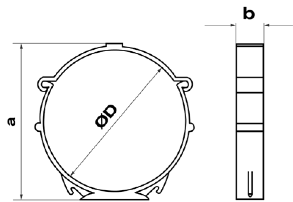 Holder til runde hvide ventilationsrør. Den specielle klik-lukning giver et stabilt greb om røret. Kan monteres på plan flade med skruer.