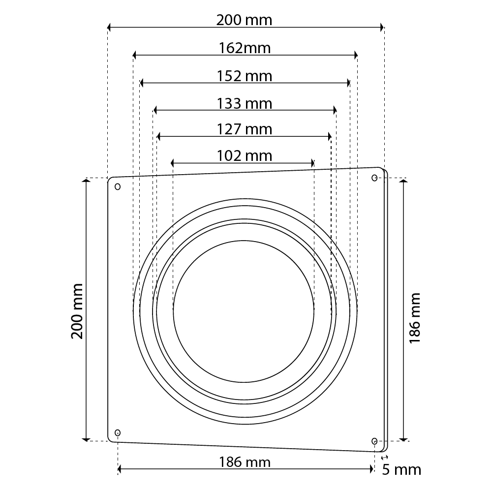 Universal dækplade til Ø102 – Ø127 – Ø133 – Ø152 – Ø162