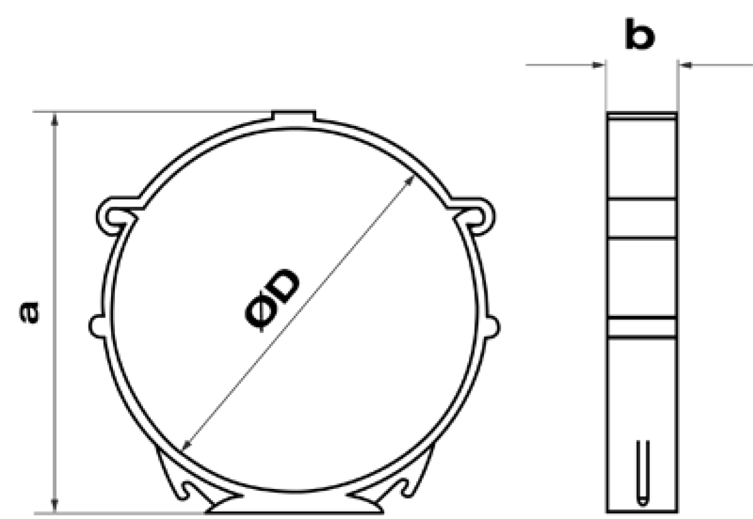 Holder til runde hvide ventilationsrør. Den specielle klik-lukning giver et stabilt greb om røret. Kan monteres på plan flade med skruer.