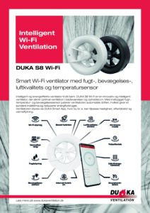 DUKA S8 Wi-Fi er en innovativ og intelligent ventilator, der sikrer optimal ventilation i badeværelser og opholdsrum. Med indbygget fugt-, temperatur- og bevægelsessensor justerer ventilatoren automatisk driften, hvilket giver et sundere indeklima og reducerer energiforbruget.