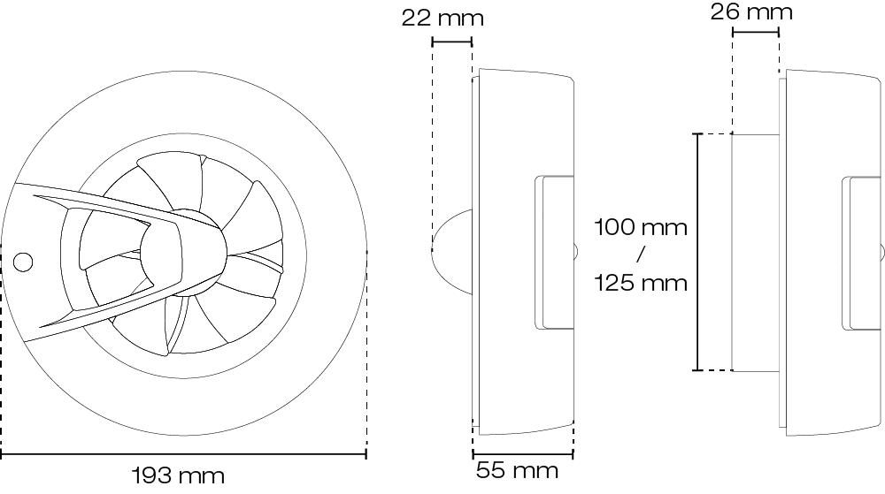 Energieffektiv og lydsvag – Lavt strømforbrug (0,9 – 3,1 W) og høj luftkapacitet (op til 115 m³/h).