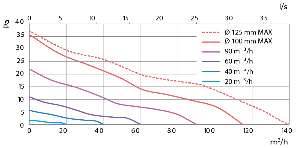 DUKA S8 kan monteres både i loftet og på ydervægge, hvilket gør den fleksibel i forhold til forskellige boligløsninger. Den passer til ventilationskanaler med en diameter på 100 mm og leveres med en adapter til 125 mm, så den kan tilpasses eksisterende installationer.