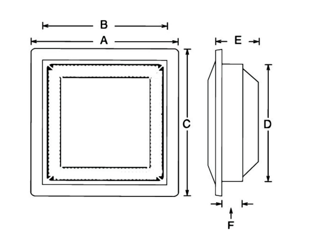 | Klapventil | 150x150 mm | 0 - 173 cm2 | 179 mm | 140 mm | 179 mm | 140 mm | 45 mm | 25 mm |