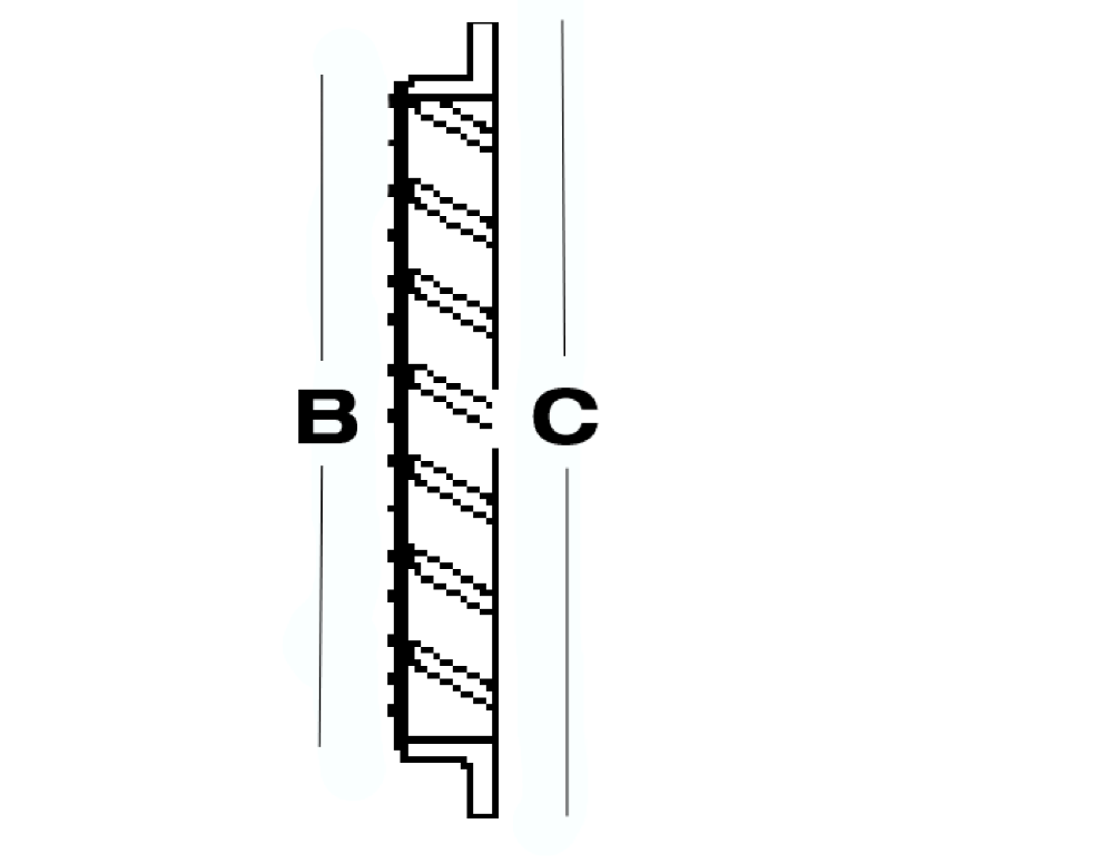| Type | Luftgennemgang | B | C |