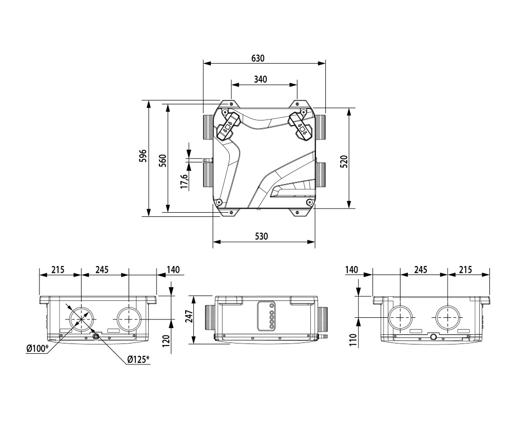 Aggregatet leverer en fritblæsende luftmængde på 130 m3/h og 43-97 m3/h ved 70 Pa, og kan anvendes i boliger op til 90 m3/h.