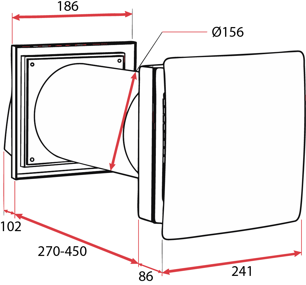 - Rørdimension på Ø156 mm