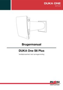 Ved ventilationsforbedringer kan en enhed klare op til 27 kvm. DUKA One S6 Plus har en indvendig komfort skærm, hvor indblæsningsluften føres op ad, hvilket mindsker trækgener. Motoren placeres længst inde i røret, og en lyddæmpningsmåtte placeres på indvendig side af kernen for at give en øget lyddæmpning. Den udvendige stormskærm leder indtags- og afkastluft til og fra enheden.