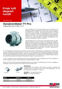 DUKA Ventilations TT Pro kanalventilator har en høj ydeevne og kapacitet. Kanalventilatorerne kan anvendes til enten udsug eller indblæsning i områder, der kræver høj ydeevne, kraftfuldt luftstrøm og lavt lydniveau. Kanalventilatorerne kan anvendes sammen med Ø125 – Ø160 mm ventilationsrør.